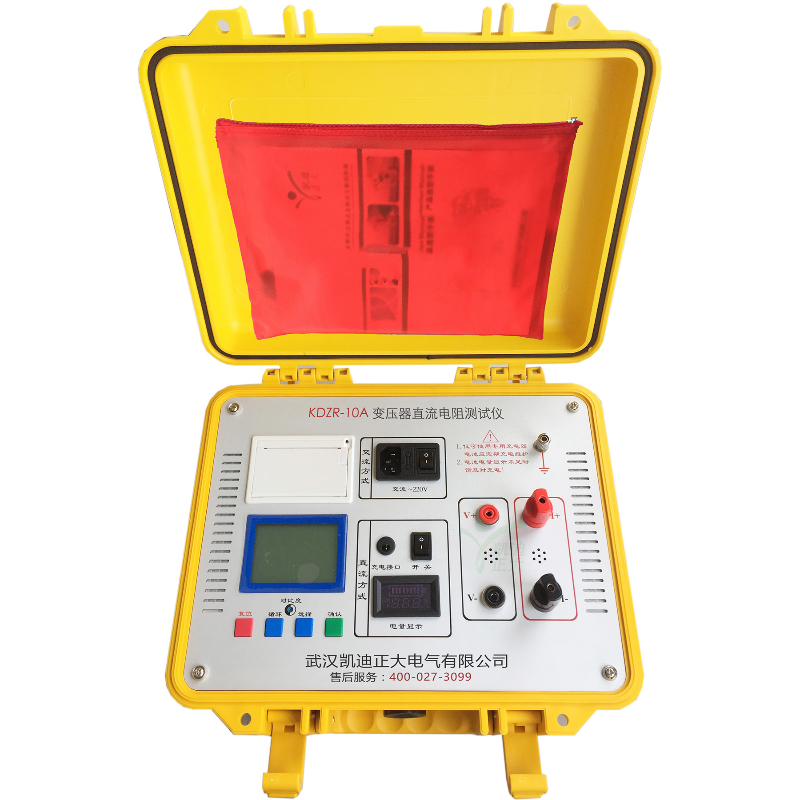 KDZR-10A變壓器直流電阻測試儀是變壓器、互感器、電抗器、電磁操作機構等感性線圈制造中半成品、成品出廠試驗、安裝、交接試驗及電力部門預防性試驗的必測項目,能有效發現感性線圈的選材、焊接、連接部位松動、缺股、斷線等制造缺陷和運行后存在的隱患。為了滿足感性線圈直流電阻快速測量的需要,武漢凱迪正大電氣有限公司利用自身技術優勢研制了KDZR-10A變壓器直流電阻測試儀采用全新電源技術,具有體積小、重量輕、輸出電流大、量程寬、數字顯示、內部鋰電池供電等特點。整機由單片機控制,自動完成自檢、數據處理、顯示等功能,具有自動放電和放電指示功能。儀器測試精度高,操作簡便,可實現直阻的快速測量。