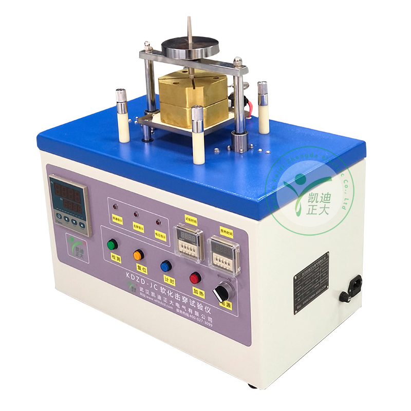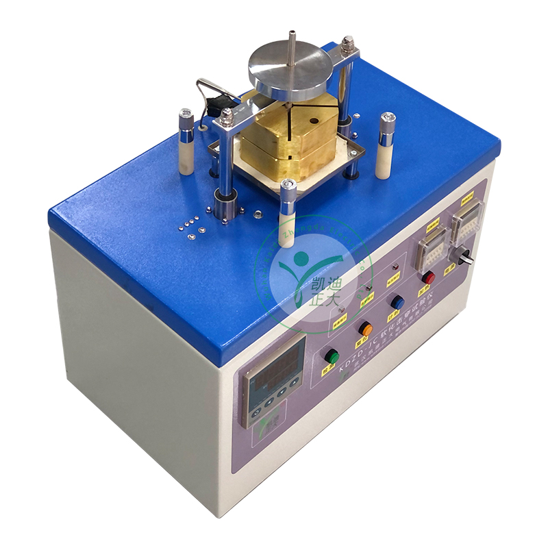 KDZD-JC軟化擊穿試驗儀用于檢測3.00mm及以下漆包線在熱狀態(tài)下漆膜軟化后的絕緣性能,根據(jù)設(shè)定的預熱溫度、試驗時間、儀器自動完成對試樣的預加熱、加負荷、加試驗電壓,達到試驗時間或試樣被擊穿時即卸負荷,發(fā)出聲光信號。該儀器采用熱電偶測溫,智能溫度控制,能自動調(diào)節(jié)和顯示試驗溫度、測試部分采用集成電路,整個測試過程自動完成。