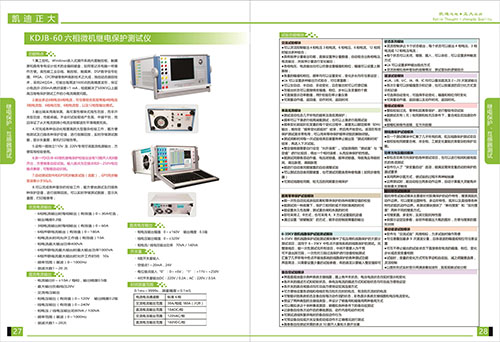 上次介紹了《2018產品選型手冊來了》繼電保護,互感器測試KDHG-518 變頻CT/PT互感器特性測試儀,KDJB-30三相微機繼電保護測試儀,這次要介紹繼電保護,互感器測試KDJB-60六相微機繼電保護測試儀集工控機,Windows嵌入式操作系統內置觸控板,觸摸屏和具有專有設計技術的全編碼鍵盤,如通筆記本電腦一樣操作方便,高性能工業總線,觸控板,觸摸屏,DSP數字信號處理,FPGA,CFC儲存等各種高新技術之大成,獨創動態跟蹤技術,采用24DA,可輸出每周波1600點的高精度波形,保證小電流(0-200mA)的絕對誤差<mA,徹底解決了500KV以上超高壓繼電保護工作的小電流精度問題。