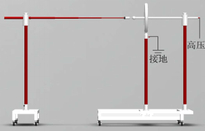 這里以35KV帶接觸電極延長的驗電器為例(注:做啟動電壓需配合升壓設備):首先將帶導軌的試驗平車上中間平車(安裝有均壓環)移動標有a1430mm(紅色帶箭頭)位置,平車上的標尺與平臺上的標尺對齊。然后接好地線包括2平車底座、均壓環及升壓設備,將驗電器固定在小平車上,同時將驗電器抽出,然后移動小平車使得驗電器穿過均壓環,且驗電器的金屬頭與均壓球接觸保持即可,將升壓設備的高壓導線接到均壓球延長桿上,再接升壓設備的其他導線,試驗人員撤離到安全區后合上電壓,將升壓設備均勻加壓知道驗電器發出報警,馬上停止加壓,此時記錄下高壓電壓數值,且比對數值是否落在35KV的15%~40%內(5.25kv~14kv),是表明驗電器啟動電壓報警合格,否則此驗電器不合格。其它規格的驗電器啟動電壓也是如此,通過移動均壓環平車到指定位置即可。