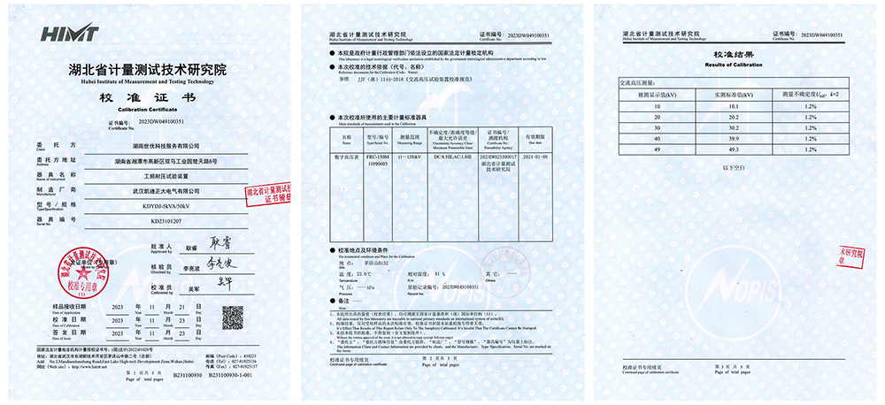 2023年11月23日,湖南世優(yōu)科技服務(wù)有限公司采購我司的KDYDJ-5KVA/50KV工頻耐壓試驗(yàn)裝置,順利通過湖北省計(jì)量測試技術(shù)研究院的校準(zhǔn),這標(biāo)志著我們的產(chǎn)品在品質(zhì)和質(zhì)量值得肯定。這一喜訊不僅彰顯了我們的產(chǎn)品質(zhì)量,也進(jìn)一步證明了我們在電力行業(yè)中的能力和信譽(yù)。